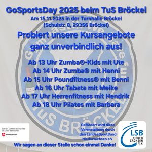 Am 15. November 2025 bot die Gymnastiksparte des TuS Bröckel im Rahmen eines GoSportsDays ein abwechslungsreiches Programm an, das dazu einlud, die…